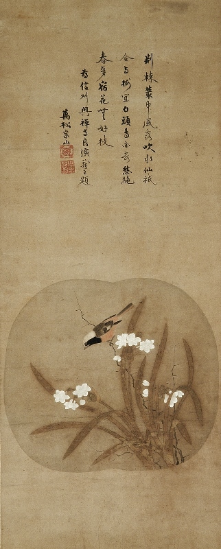 Bird and Narcissus inscription by Shuzan Toki