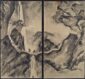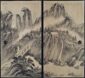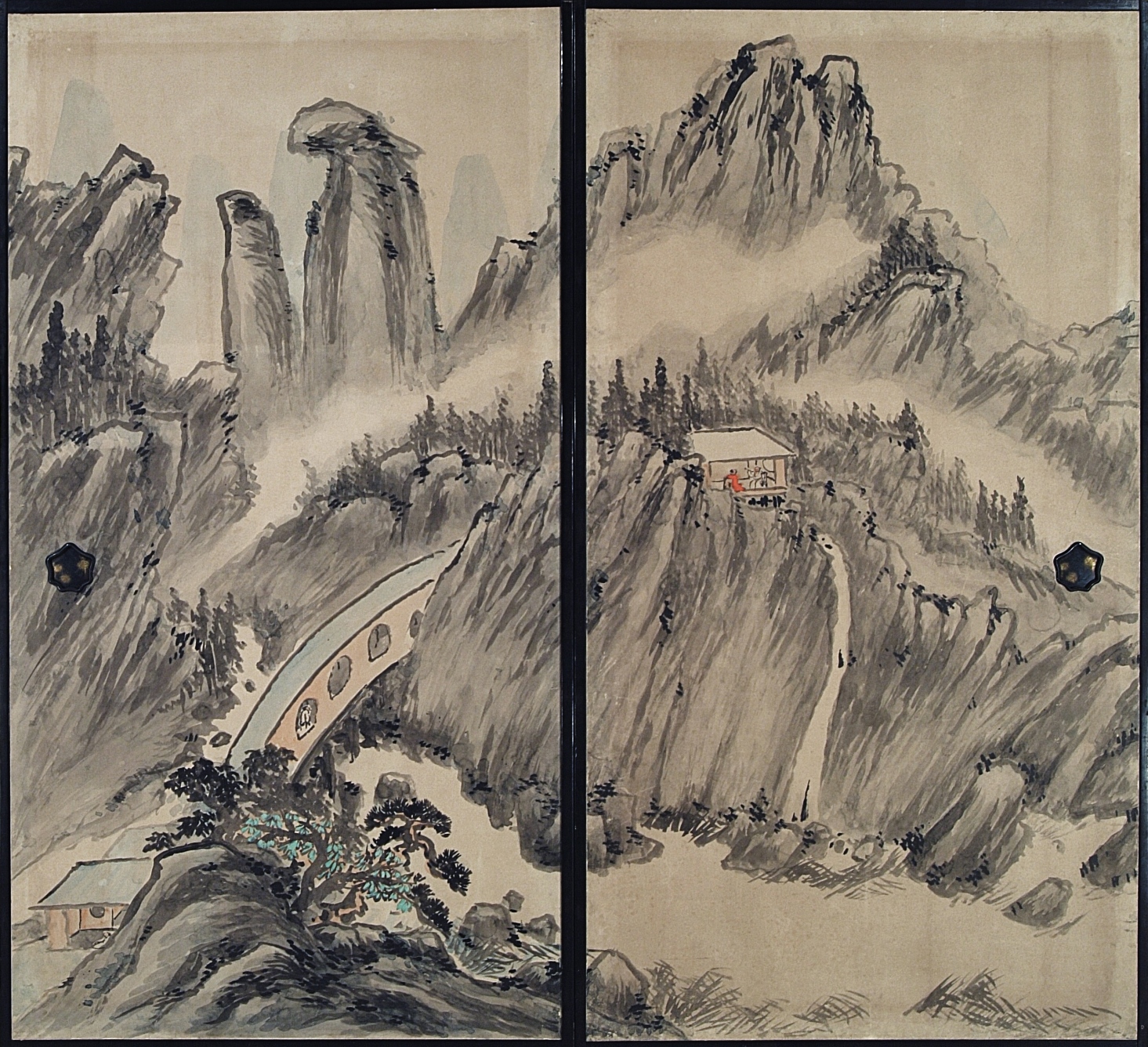 These sliding screen paintings by Tomioka Tessai (1836-1924) adorned two rooms in the study room of the mansion built in Mikage, Hyogo Prefecture, by Suzuki Masaya (1861-1922), the third director-general of Sumitomo. Tessai was invited by Suzuki to paint sliding screens, and moreover he wrote the title of the mansion, “Takushinken.” These were completed in 1909, when Tessai was 73 years old. The collection includes 16 sliding screen paintings: landscapes, pine trees, flowers, accompanied by a single frame of framed calligraphy. While Tessai’s works remain numerous today, his large-scale sliding screen paintings are relatively rare. This drawing remains in its original form.