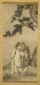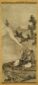 In Japan, interest in the world of immortals or immortal sages grew in Zen Buddhist society and spread to samurai society as well. These triptych hanging scrolls depict three of the Eight Immortals, Taoist immortals with superhuman powers: Zhang Guolao, Lü Dongbin, and Tieguai. Zhang Guolao is depicted from behind holding a gourd containing a donkey folded like paper; Tieguai is depicted sitting on a cliff, liberating his soul; and Lü Dongbin is depicted unfolding a scroll after receiving a treasure from his maser, Zhongli Quan.