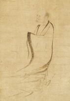 The painting “Bodhidharma on a Reed” depicts the legend of Bodhidharma, the founder of Zen Buddhism, who traveled from India to China to engage in dialogue with Emperor Wu of the Liang dynasty. However, realizing that they were unable to understand each other and that there was no opportunity, Bodhidharma rode on a reed leaf and crossed the Yangtze River to depart north. In this work, the Bodhidharma, blown by the wind on a reed, is skillfully depicted.