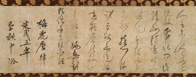 虎関師錬は詩文、書法をよくした学僧として知られます。本作の筆致、詩文部分は薄墨を自在に走らせた草書体、款記の部分は書の研鑽を積んだことをうかがわせる行書体。教科書にも載る『元亨釈書』の編者虎関師錬。梅の季節の今、「梅花」を書写したその筆跡から虎関の人柄をご想像いただくのも楽しいのではないかと思います。